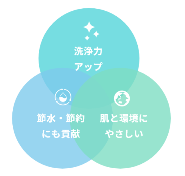 UFB水は汚れ落ちが良いため、洗剤の使用量を減らせるほか、泡切れが良いためすすぎの時間が短縮されます。洗濯・食器洗い・シャワーなど、家中で水を使う量が減ることで、水道代と給湯にかかる光熱費の削減に貢献します。環境意識の高いユーザーからも、エコでサステナブルな製品として評価されています。