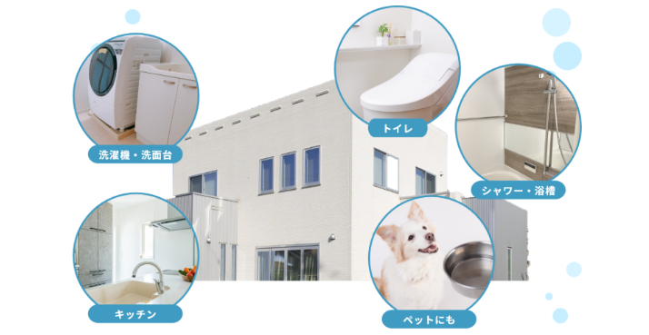 - 家中すべての水をUFB化:キッチン、洗面所、お風呂、洗濯機、トイレなど、蛇口をひねればどこからでもUFB水が出てきます。